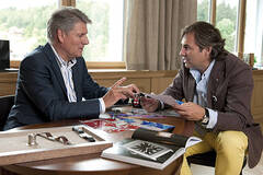 Jaeger-LeCoultre Chefdesigner Janek Deleskiewicz und Hubertus von Hohenlohe – eine der facettenreichsten Künstler-Persönlichkeiten unseres Landes – beim kreativen Brainstorming.